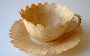 Другой дизайнер из Швеции, Ребекка Уилсон, решила, что посуда для особенных случаев, даже одноразовая, тоже должна быть особенной. И создала уникальную коллекцию Finest paperware, которую выставили в лондонской галерее искусств Flow Gallery. Посуда Ребекки создана в лучших традициях фарфора и керамики. Сама Уилсон считает, что ее коллекция – вызов современной традиции расточительного потребления, попытка сделать бумажные приборы объектом высокого искусства. Для создания стаканчиков и тарелок была использована бумага, созданная вручную из целлюлозы и порошка фарфора. Это позволило выполнить тиснение и роспись, делающую коллекцию достойной конкуренции с лучшей фарфоровой посудой мира. Изначально Ребекка расписывала ее обыкновенной шариковой ручкой, но потом перевела эскизы в цифровой вид и нанесла на всю коллекцию. После этого чашки стали выглядеть как настоящие фаянсовые, расписанные глазурью голубого и синего цветов, с позолотой и лепниной. По мнению ценителей красоты, несмотря на использование дешевых материалов, эта коллекция достойна королевского стола.